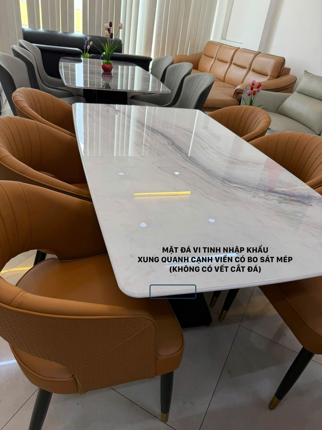 • Chân bàn: Sắt sơn tĩnh điện nhập khẩu ( bên dưới có lót gỗ PVC dày đỡ mặt đá